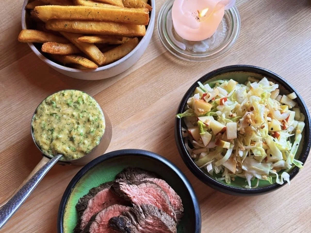 DKK 245,00 - (Steg, kartofler, salat og sauce)